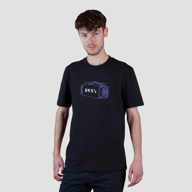 Kultura proof-of-work. Vytisknuto. Toto tričko je pro starou školu. Pocta Antmineru S9 – ikonickému zařízení, které formovalo historii těžby. Pokud znáš ten zvuk, toto tričko má svůj jedinečný náboj.